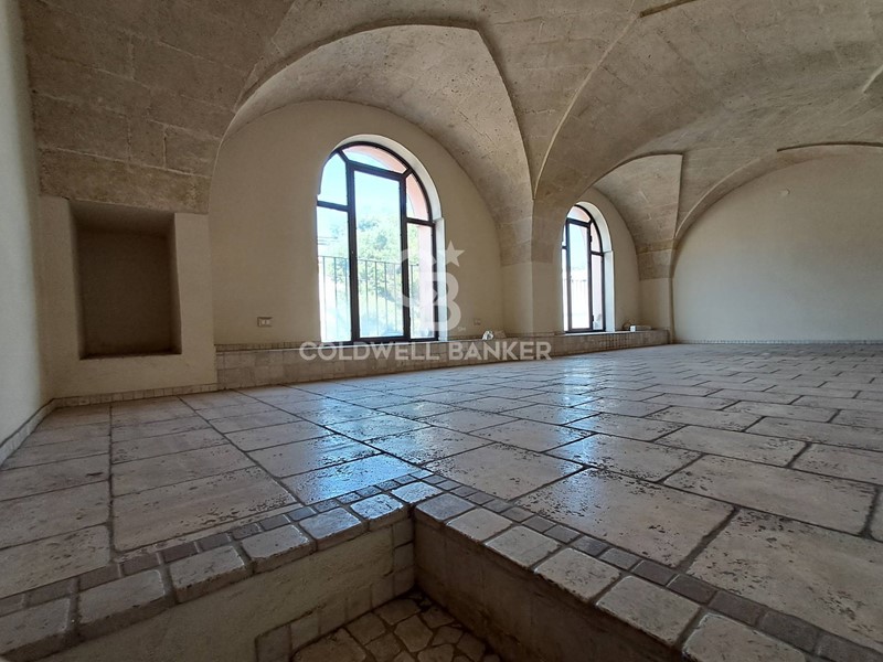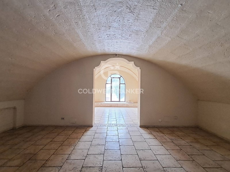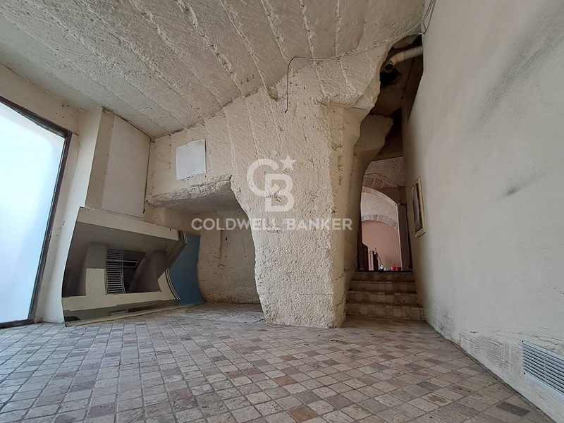 Al piano terra vi è un ampio vano, scavato nella roccia, e tre ambienti separati, utilizzabili come ufficio ed un bagno. Piano 1°: due ampi ambienti, uno a volte a stella e grandi finestre, altro con volta a botte. Dalle scale in pietra si giunge al piano interrato dove troviamo un ampio vano con volte a botte luminoso. E presente un camino. Il pavimento è in parte in pietra, decorato con degli intarsi allingresso, ed in parte è in gres effetti chianca e cotto antico.