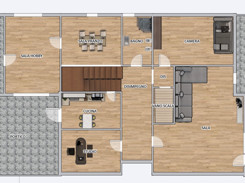Un'area scoperta di circa 300 metri quadrati, di cui una parte destinata a giardino, ed un portico valorizzano la proprietà.