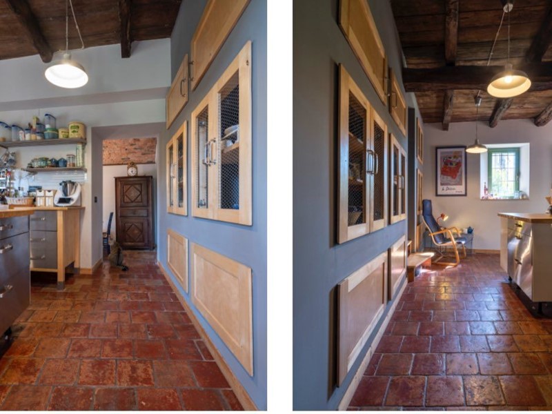 La casa semi indipendente e' composta da due ingressi, sala con pietra a vista , salone Voltato con Mattoncini rossi d'epoca, grande cucina con pavimento originale, due bagni, quattro camere, zona studio, cantina.