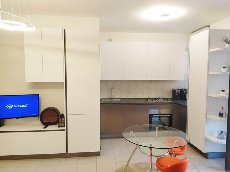 PEDASO - MONOLOCALE CON TERRAZZO E BOX- libero da novembre 2025 - In piazza Falcone e Borsellino, in complesso di recente realizzazione servito da numerose attività commerciali primarie nelle vicinanze, campi per sport, parco e pista ciclabile che raggiunge la spiaggia, Monolocale molto luminoso completamente arredato con mobilia di pregio, inclusi elettrodomestici e stoviglie. E' composto da open space con angolo cottura finestrato, due divani letto matrimoniali con materasso ortopedico, diverse armadiature su misura inclusa scarpiera. Ha bagno finestrato con doccia e doccino bidet da lavabo. Dispone di terrazzo vivibile arredato con tavolo e sedie, angolo lavatrice e lavandino esterni. Ha riscaldamento autonomo a metano, climatizzatore caldo/freddo e zanzariere agli infissi. Completa la proprietà un garage di mq 19 in seminterrato raggiungibile con ascensore. Ideale per uso vacanza, per investimento o per prima abitazione di single o coppia. Rif. 6883