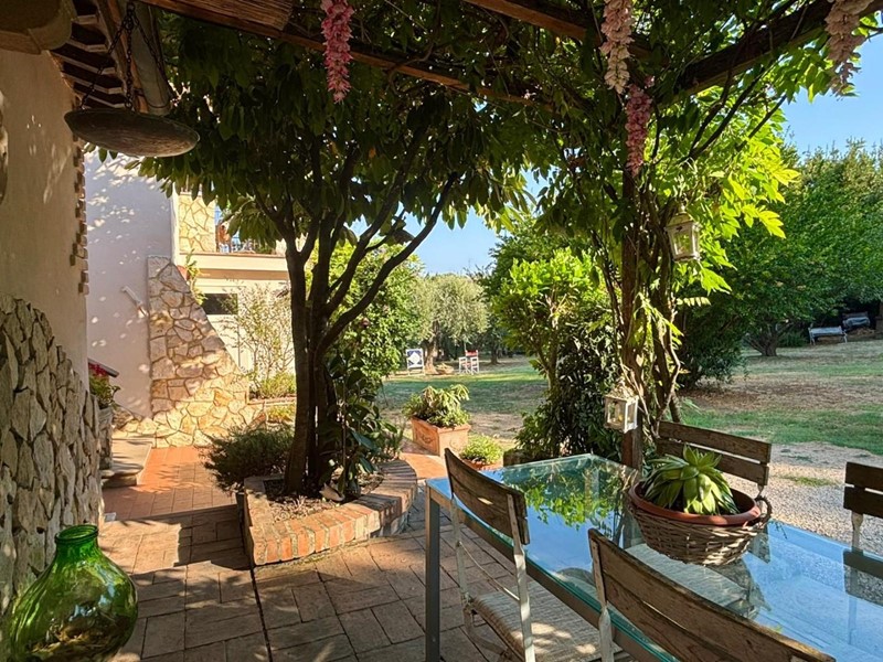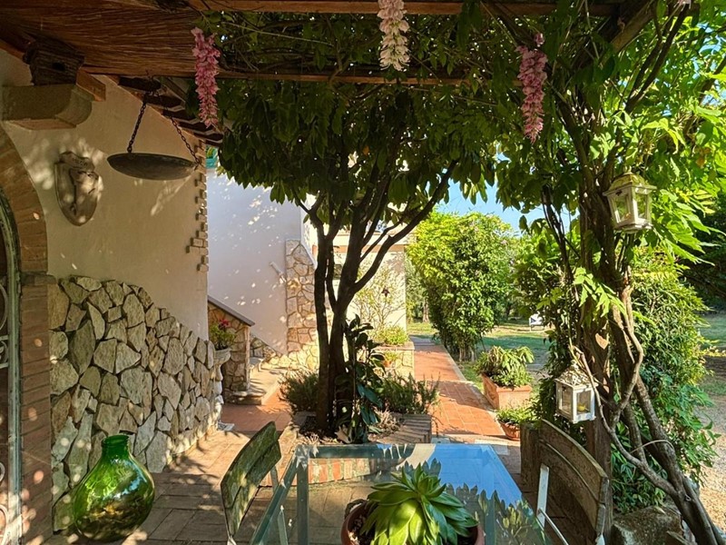 Gli spazi esterni sono uno dei veri punti di forza della proprietà. Lo splendido parco recintato perfettamente curato e ricco di verde e di arbusti in fiore. La villa offre infatti ampie zone living all’aperto pensate per vivere appieno la bella stagione: verande coperte, terrazza naturale si aprono sul verde circostante, offrendo scenari ideali per pranzi in famiglia, cene al tramonto e momenti di relax immersi nel silenzio della campagna. Il giardino, arricchito da piante aromatiche, siepi ornamentali, imponenti alberi e ulivi in produzione.