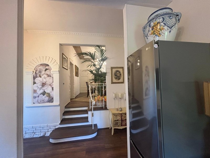 Il piano primo accoglie un bellissimo soggiorno con il suo imponente tavolo in marmo, una cucina in muratura, con accesso diretto al verde terrazzo, dove poter ammirare il panorama circostante. La zona living accoglie inoltre un ulteriore soggiorno e due bagni impreziositi di marmo. Il reparto notte ospita due bellissime camere da letto una delle quali con cabina armadio.