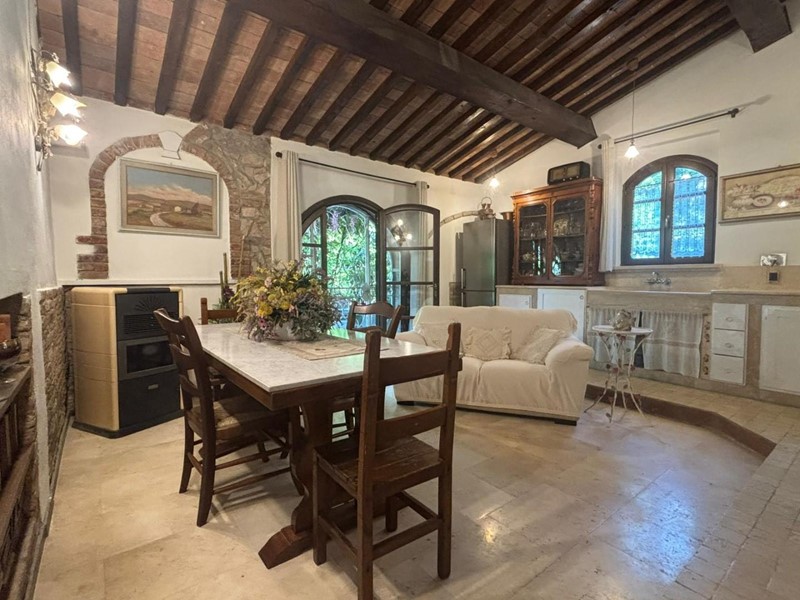 Un viale alberato in squisito stile toscano conduce alla proprietà. La Villa accoglie al piano terra una deliziosa dependance con una luminosa zona living, con cucina in marmo, sala da pranzo, soggiorno ed il suo imponente camino in tipico stile toscano, con accesso diretto al bellissimo giardino. Completa il piano una camera matrimoniale con bagno en-suite con ulteriore accesso diretto al parco. Il piano terra offre anche due locali ad uso magazzino, che potrebbero essere ristrutturati a collegati tra loro per un'ulteriore spazio abitativo.