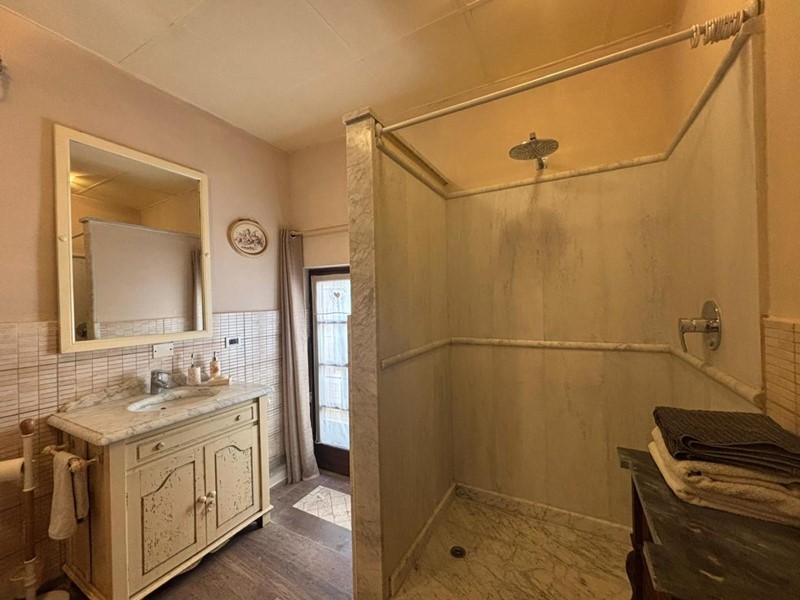 Tutti gli ambienti sono impreziositi da finiture di altissimo pregio nel gusto classico della tradizione toscana, come i pavimenti ed i bagni in marmo di Carrara.