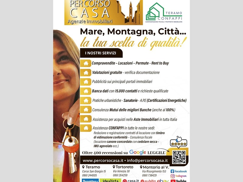 Per ottenere maggiori informazioni per questo APPARTAMENTO in VENDITA a TERAMO, zona Castello (Rif. V4160B), potete contattarci al numero 0861 244005 oppure visitare la nostra agenzia in Corso San Giorgio 15.