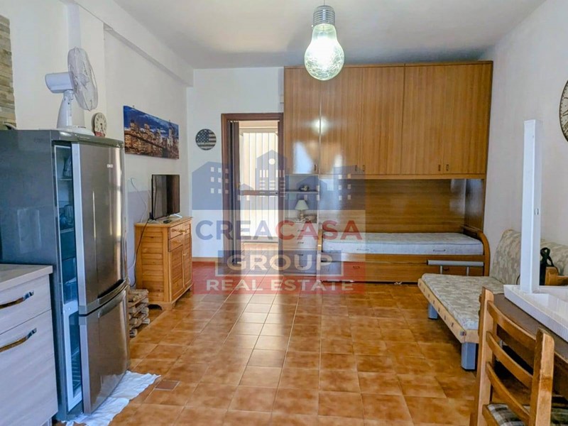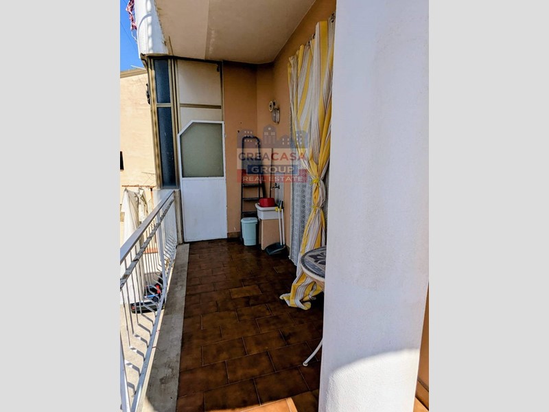 L'appartamento ha una superficie di 40 mq catastali distribuito come segue: ingresso su disimpegno, dove vi è lo spazio necessario per un armadio a muro, bagno completo di bidet e doccia, unico ambiente con angolo cottura e zona living che affaccia sul balcone di 16 mq.,
