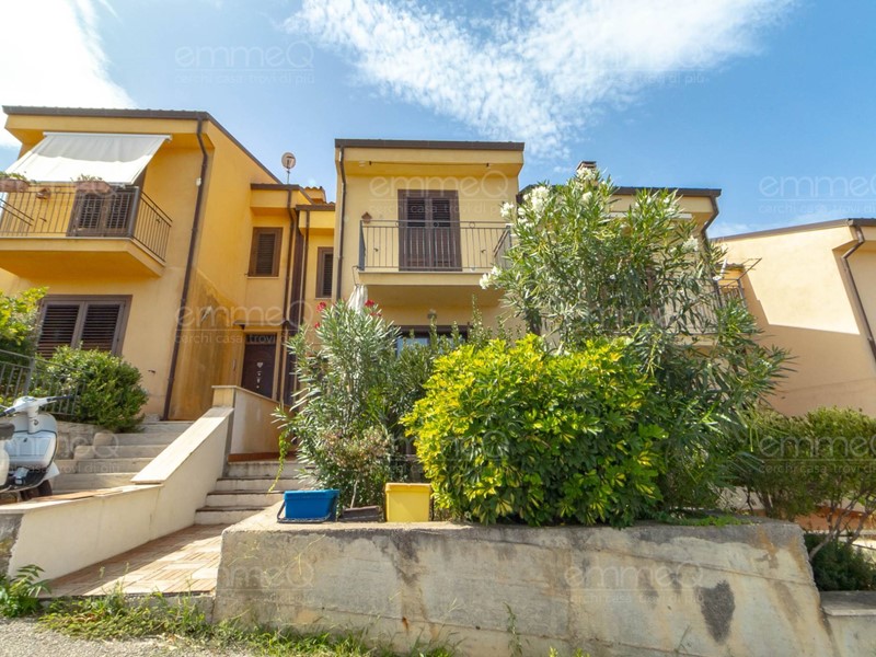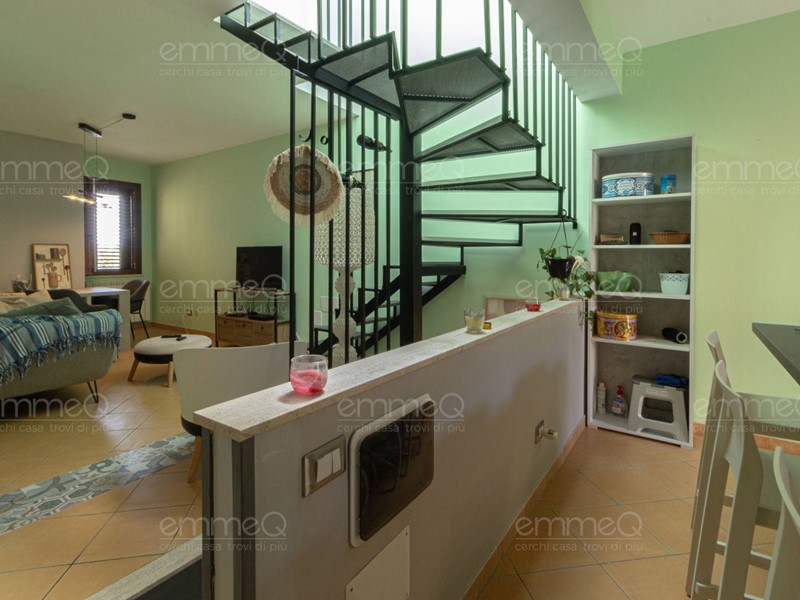 Dal piano terra si accede alla cucina a vista e si segue sul corridoio con wc e la camera che espone sul terrazzino; al di sotto un ampio locale di sgombro grezzo da arricchire e personalizzare e provvisto di altro wc. Al primo piano tramite scala a L si presenta un comodo saloncino la cucina media a vista attigua un balcone il wc il ripostiglio e la camera matrimoniale con vista sul paese. Di pertinenza esterna un gradevole giardino e 2 posti auto scoperti proprio di fronte la villetta. Il residence è abitato interamente con gli spazi comuni accoglienti e illuminati in notturna. A solo 500 metri dal centro abitato e comodo per chiunque soprattutto per chi abbia voglia di trarne profitto per locazioni turistiche essendo nell'insieme un'abitazione chiavi in mano e pronta agli usi nell'immediato.