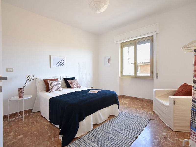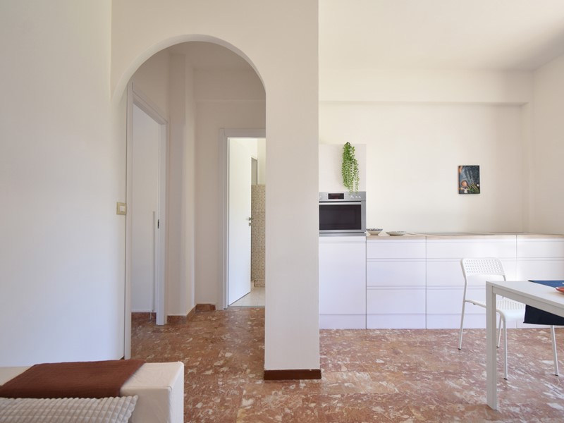 La soluzione ha un ingresso sulla zona giorno con angolo cottura a vista, uscita su un balcone di circa 6 mq, una camera da letto matrimoniale di 15,20 mq ed u bagno con piatto doccia, servizi, attacco lavatrice e finestra.