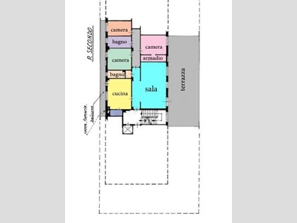 la zona giorno si compone di una cucina abitabile con uscita su balcone, un ripostiglio, e di un ampio e luminoso salone dal quale si accede poi ad una bellissima terrazza vivibile di circa 80 mq. da attrezzare a proprio piacimento, con piacevole affaccio sul verde.
