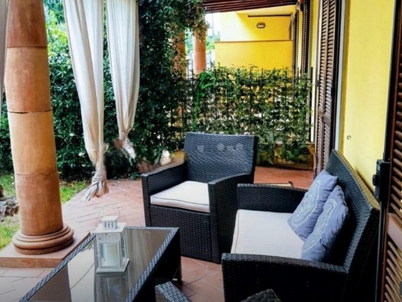 Marina di Massa a ca 200 metri dal mare appartamento tutto su un piano con due spazi esterni con caratteristica pompeiana, di cui uno con giardino, così composto: angolo cottura con ampio soggiorno, disimpegno, due camere un bagno e grande cantina di proprietà. Ingresso autonomo con posto auto interno di proprietà. L’immobile si presenta in ottime condizioni.