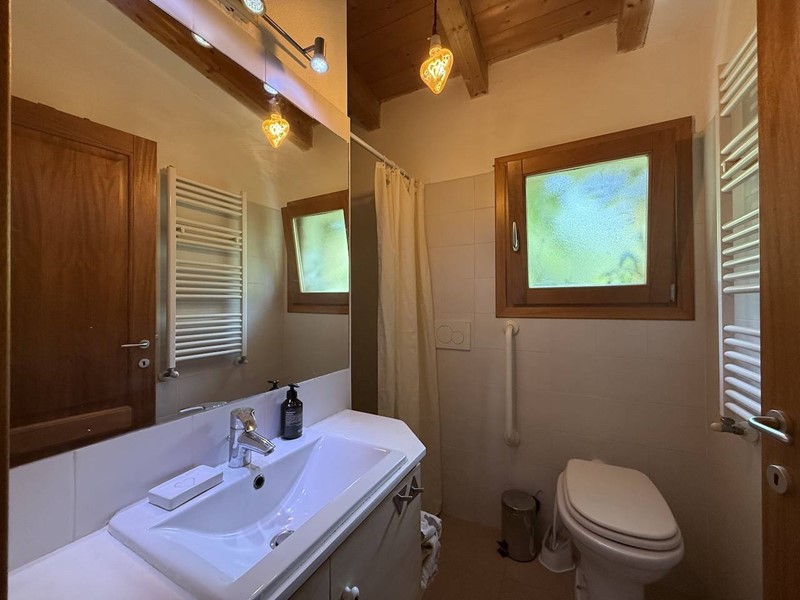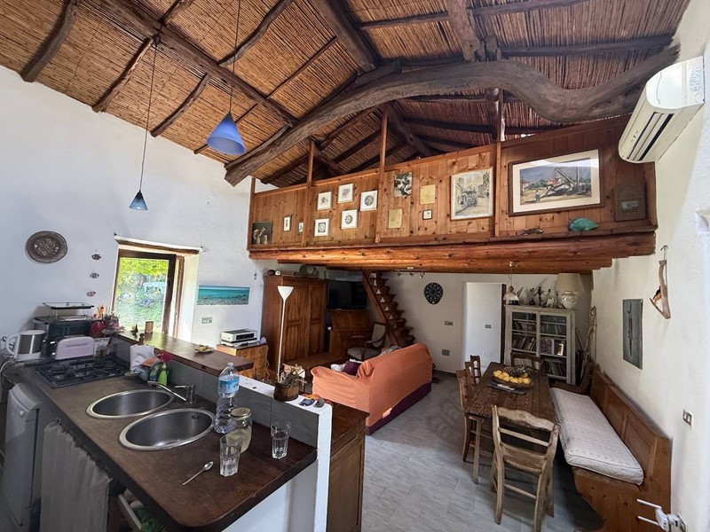 la prima è composta da un ampia zona giorno con angolo cottura, un ampio soppalco adibito a zona notte, una camera da letto, un ampio bagno, un disimpegno dove è presente una stufa a legna utilizzata per il riscaldamento invernale.
