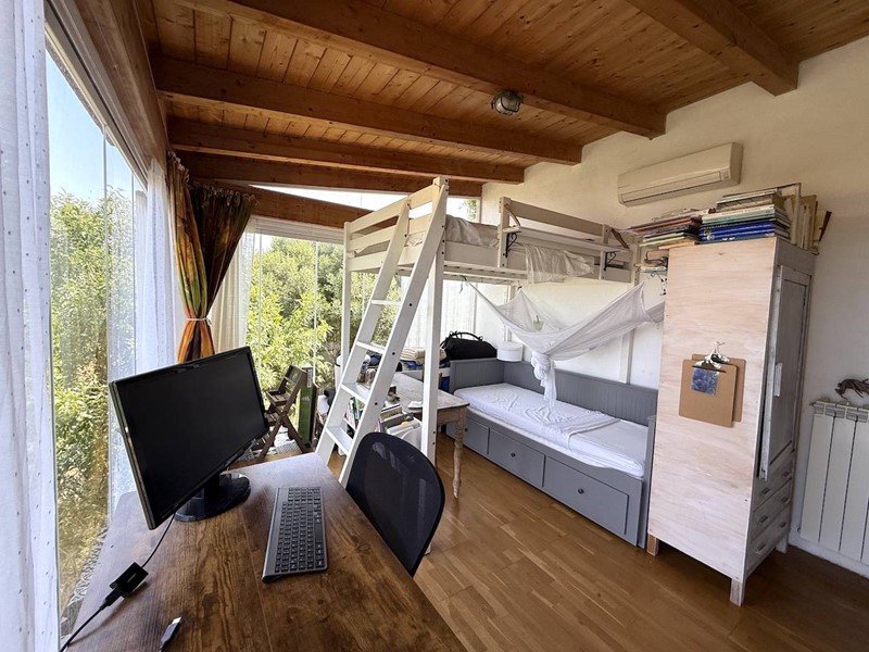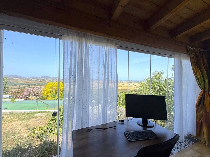 Nella zona giorno sono presenti due porte che portano all'esterno e alla veranda coperta, da cui si gode di una fantastica vista panoramica sulla campagna circostante e da cui si vede anche il mare e la vicina Corsica.