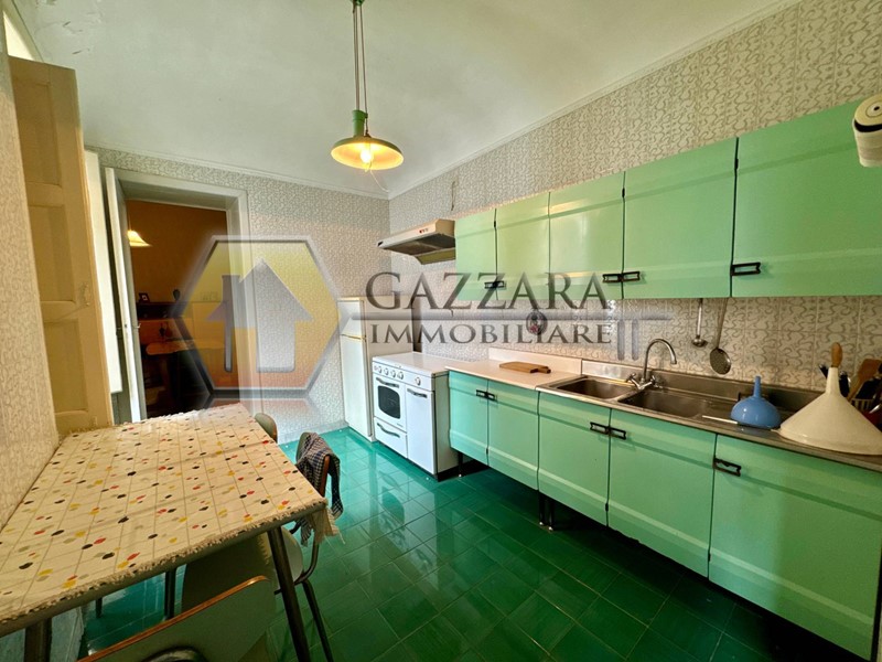 Zona pranzo, cucina abitabile con accesso diretto su un terrazzino a livello.
