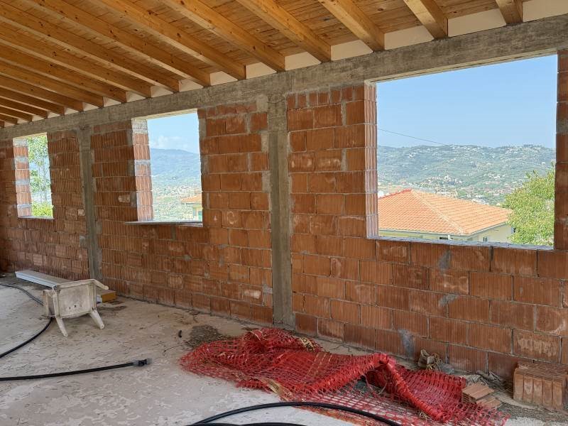 Imperia, Poggi, in vendita cemento armato tamponato per villa unifamiliare con magazzino sottostante. Da ultimare e completamente indipendente, con vista aperta fino al mare, composto da abitazione di 72mq, al piano terra, composta da: soggiorno, cucina, camera, bagno e disimpegno. Al piano sottostante ampio magazzino di 76mq. Terreno di 1600mq con possibilità di installare una piscina.