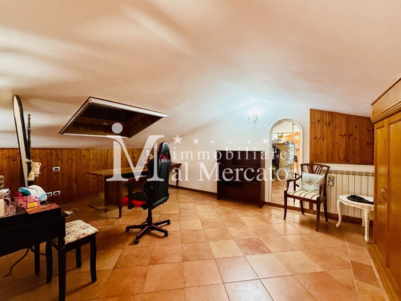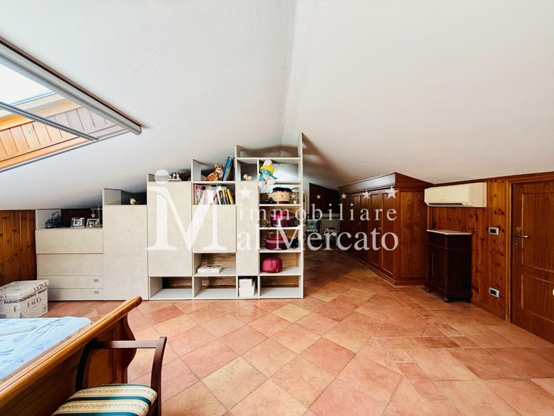 Infine al piano superiore raggiugiamo la mansarda di ampia metratura dove troviamo una camera matrimoniale e vari ripostogli sotto tetto.