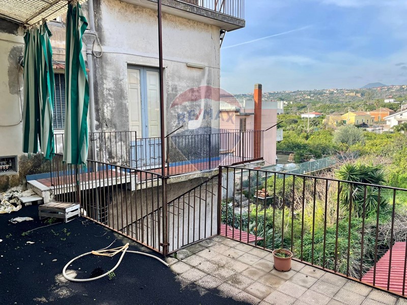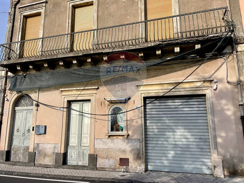 Costruita alla fine degli anni 50 ,in ottime condizioni la proprietà si sviluppa su due livelli per un totale di 300 mq di cui 290 calpestabili e si compone a piano terra di un vano salotto ,un pranzo cottura, letto e un garage per due posti auto, un ampio cortile in buona parte porticato,al piano primo abbiamo ingresso,vano salone ,quattro stanze letto di cui 3 doppie ed una singola , vano pranzo , cucina, 2 bagni ( wc diviso dal lavabo, doccia e bidet ), corridoio, lavanderia e terrazza con vista dellEtna ed inoltre la casa è dotata di ascensore ed è in possesso di abitabilità del 1957. All'interno invece vi è un terreno di proprietà di 1.344 m², edificabile, che offre un importante potenziale di ampliamento o sviluppo.