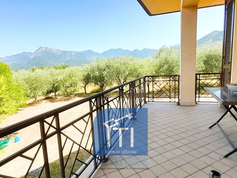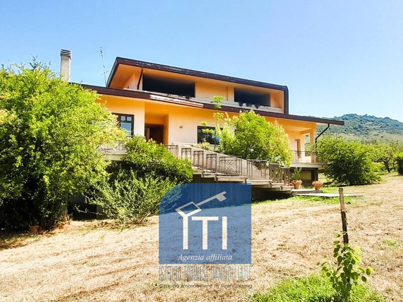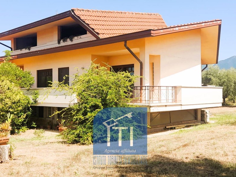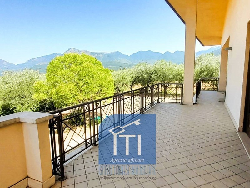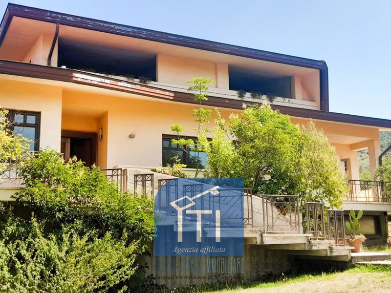 In una delle zone più belle dei dintorni di Cassino, nel comune di Sant'Elia Fiumerapido, in posizione collinare con vista Montecassino, VENDESI VILLA UNICA NEL SUO GENERE, la villa che tutti vorrebbero, grande abbastanza da viverla tutta, con spazi confortevoli e un fantastico giardino che però si tiene d'occhio e non si disperde. E' una costruzione giovane che può ospitare due famiglie. Si presenta con un seminterrato adibito sia a garage che locali tecnici ancora da destinare, una bellissima scalinata avvolgente che ci conduce ad un piano rialzato circondato ovunque da splendidi e vivibili terrazzi coperti dai quali si gode una magnifica vista e dai quali si accede da tutte le stanze del piano. Un imponente e raffinato portone si apre su un disimpegno aperto che ci fa subito intravedere parte della zona giorno illuminata naturalmente grazie alle ampie vetrate, composta dal salotto avvolgente, la sala da pranzo e il caloroso camino protagonista assoluto della stanza con la sua struttura in marmo, materiale che insieme al rovere del legno naturale, pietre e ceramiche di Vietri, unitamente a metallo forgiato ad arte, colonne architettoniche, controsoffitti, vetrocemento, parquet e tagli strutturali delle stanze, valorizzano e danno pregio a questa villa. Nella zona giorno non può mancare uno studio che all'occorrenza può essere una comoda stanza per ospiti, ambiente che si apre sul disimpegno-corridoio che, da un lato ci conduce nella fantastica cucina abitabile in parte in muratura, munita anche di ulteriore camino e lavanderia-ripostiglio, dove nulla è al caso, tutto è di design e che può ospitare tante persone vista la sua generosa dimensione e l'affaccio su più lati sulla zona esterna del terrazzo adibita a pranzo outdoor, e dall'altro, sia in basso nella zona garage, ripostiglio-palestra che nell'altra ala della casa adibita a zona notte. Incontriamo subito un bellissimo e autentico bagno caratterizzato da vasca idromassaggio e grandi specchi che esaltano il pregio delle mattonelle di Vietri usate per i rivestimenti del bagno. Proseguendo con il corridoio, ci accolgono tre camere da letto di cui una padronale con annesso bagno in camera e cabine armadio, una molto grande con terrazzo esclusivo da poter personalizzare e una camera più piccola per i ragazzi. Tutte loro, hanno l'uscita sui terrazzi esterni e la vista aperta sul giardino circostante.