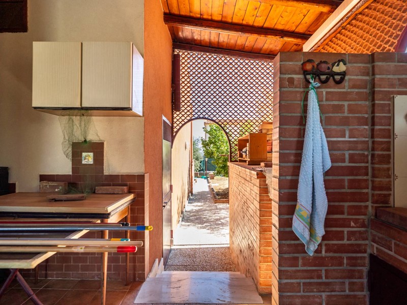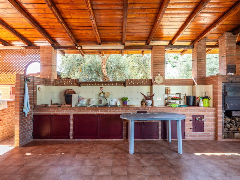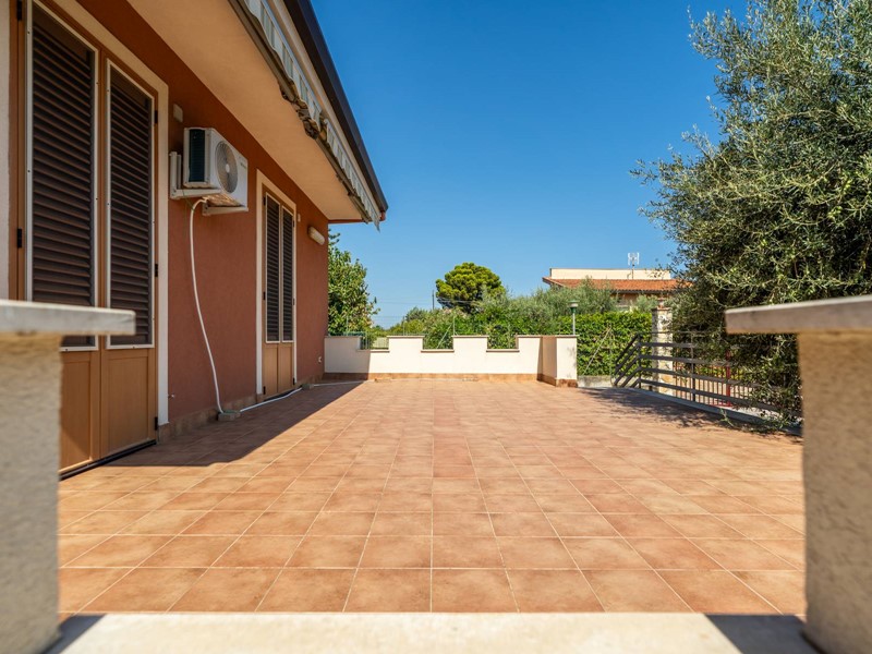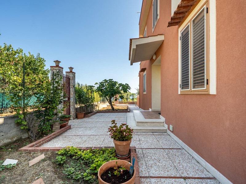 Villa indipendente fronte mare altezza Lido Sporting. con doppio cancello esterno (Divisibile). Vivibile tutto l'anno. Regolare abitabilità. Giardino esclusivo di pertinenza di mq. 1240 compreso l'area di sedime della casa distribuita su due livelli. - Piano terra: Salone doppio, cucina soggiorno, wc doccia e ripostiglio. Con scala interna in muratura si accede al Primo Piano così composto: 4 Camere da letto di cui una con finestra e terrazzino. La seconda solo con finestra. Le ultime due con terrazza di pertinenza fronte mare con scala esterna a chiocciola che accede al terrazzo di copertura con punti luce e acqua. Sono presenti due ripostigli di cui uno al piano terra ed uno al primo piano con accesso da una delle due stanze su fronte mare. Imposte in alluminio. Gas con bombolone di 60 m3 ancorato al terreno in piattaforma di cemento armato e recintato distanziato dalla casa come per legge. Impianto di irrigazione privato. Cucina esterna con due fornelli e cucina a gas e doppio lavello. BBQ e forno a legna per le pizze. Impianto di riscaldamento a gas con termosifoni funzionante. 9 Posti auto comodi interni al giardino oltre 1 posto auto esterno alla casa. La villa è costruita in regola in cemento armato e vespaio al di sotto del piano terra con una altezza di 1 metro per tutta l'estensione della casa. Prospetto rifatto nel 2020.