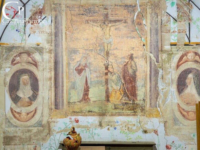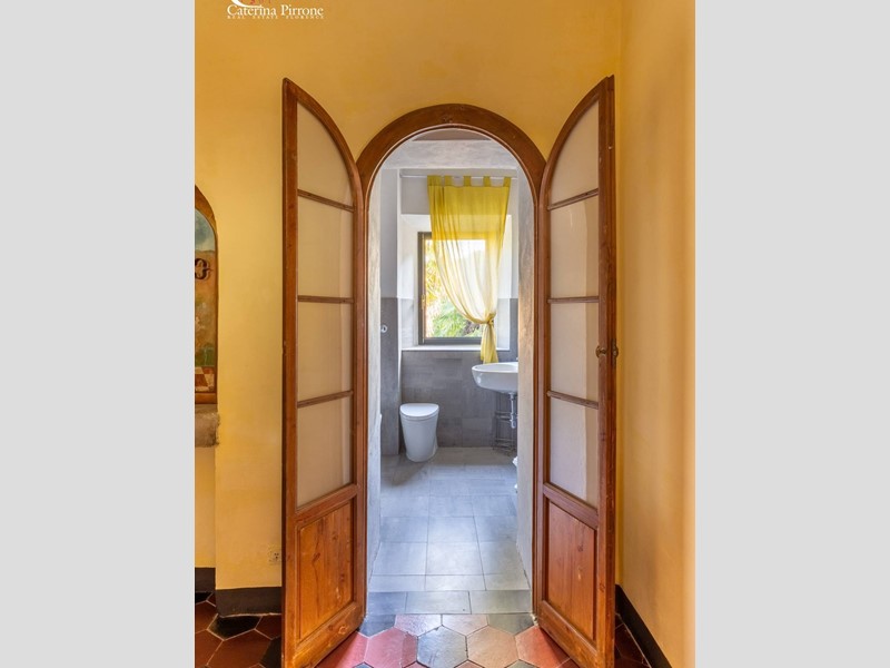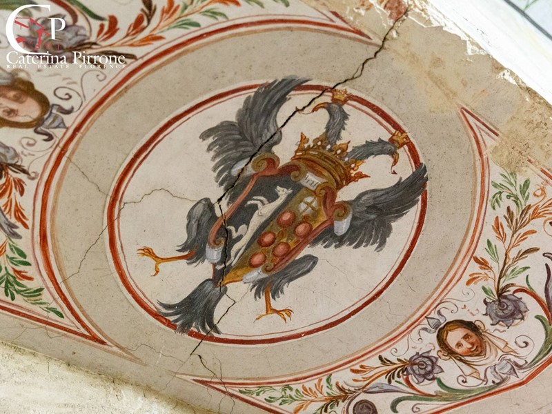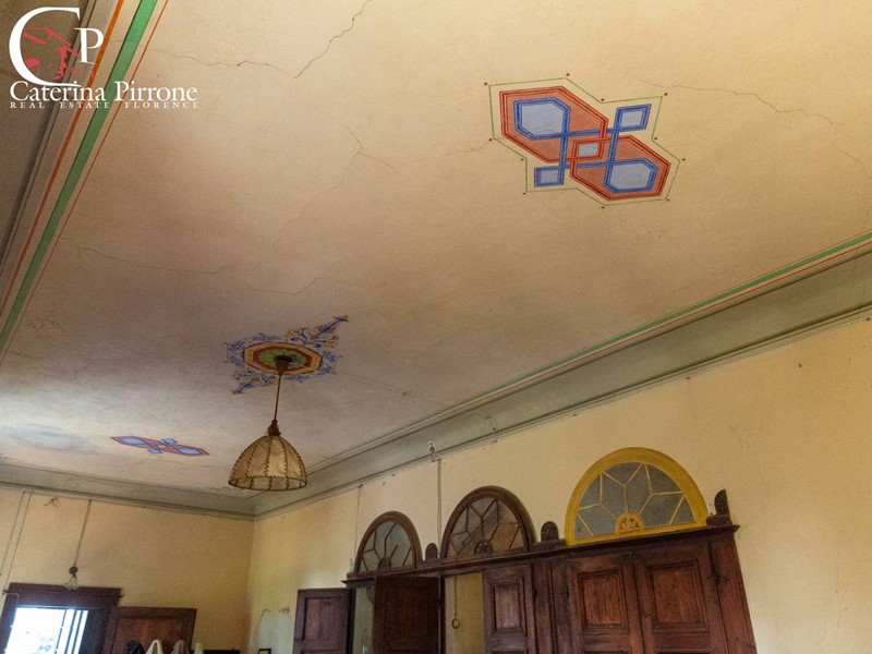 Al piano primo ci sono un appartamento di mq.75 in ottime condizioni e un altro immobile di circa mq.215 da ristrutturare, compresa la Cappella. Il primo piano ha pareti e soffitti decorati a tempera del 1850 e la cappella affrescata del XVI secolo, il pavimento del salotto principale è in piastrelle in terracotta fatte a mano.