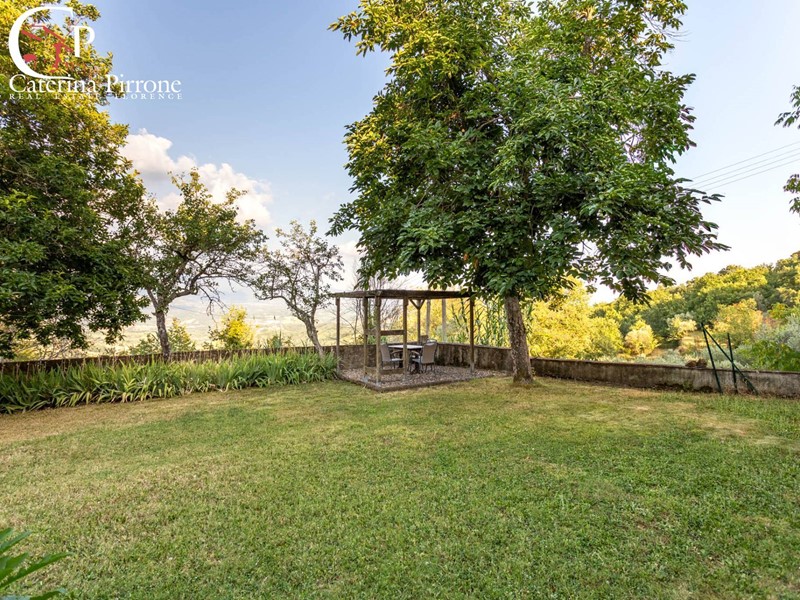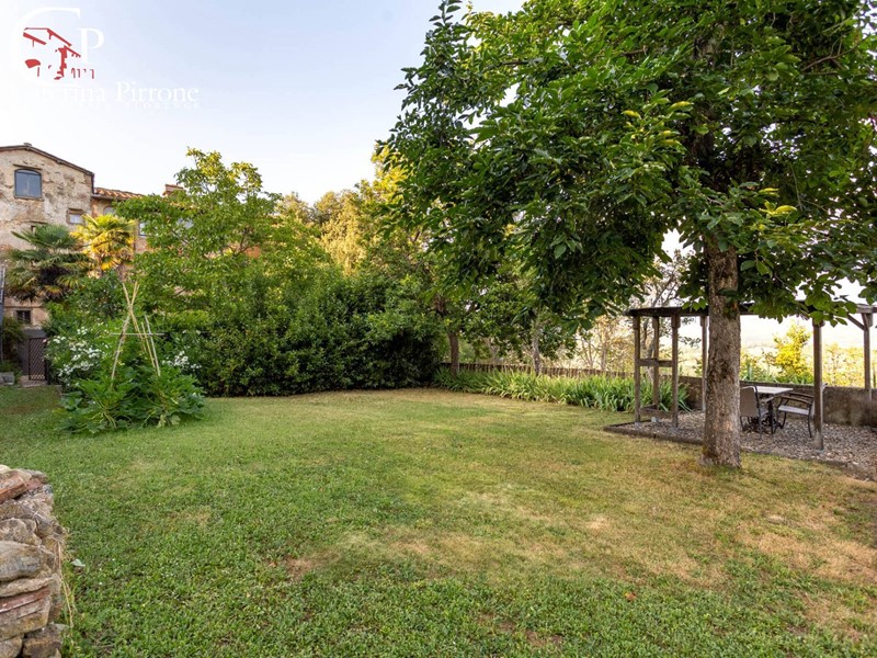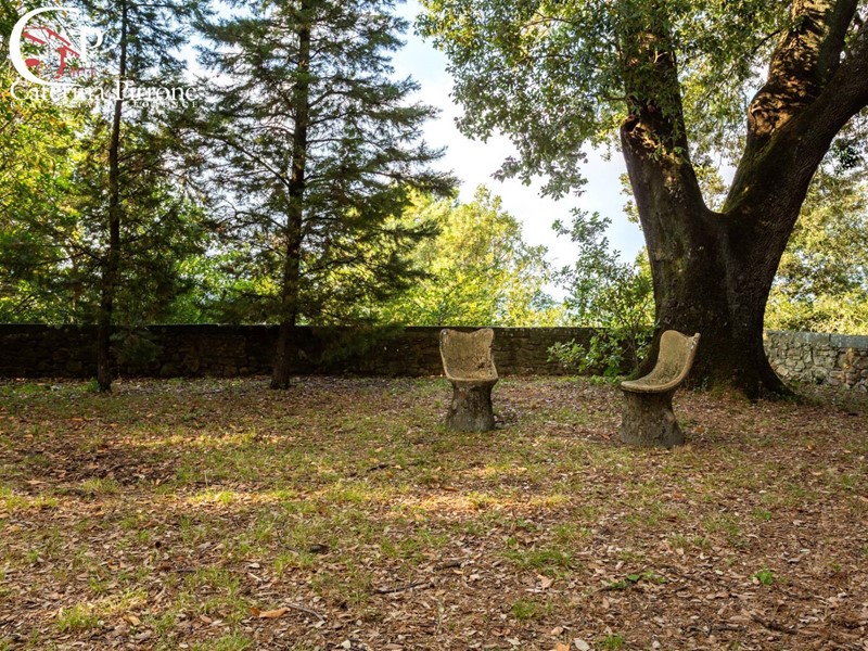 Il terreno è suddiviso in un bel giardino di mq.5.000 con ottima esposizione solare e bellissima vista nella campagna circostante. Nella parte a nord bellissima loggia con privacy e tranquillità. Il resto del terreno di circa 4 ettari con bosco, seminativo ed viti terrazzate "Chioppi" che producevano il proprio vino fino agli anni '60. Al momento il terreno risulta incolto.