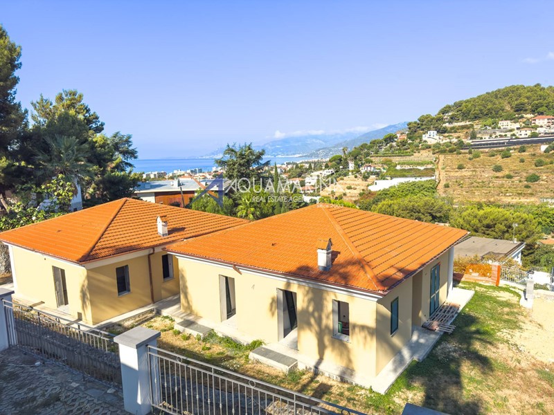 Sulla prima collina panoramica di Bordighera, a pochi minuti a piedi dal centro e dalle spiagge proponiamo in vendita cinque ville (una villa unifamiliare e due ville bifamigliari) emerse nel verde con splendida vista mare.