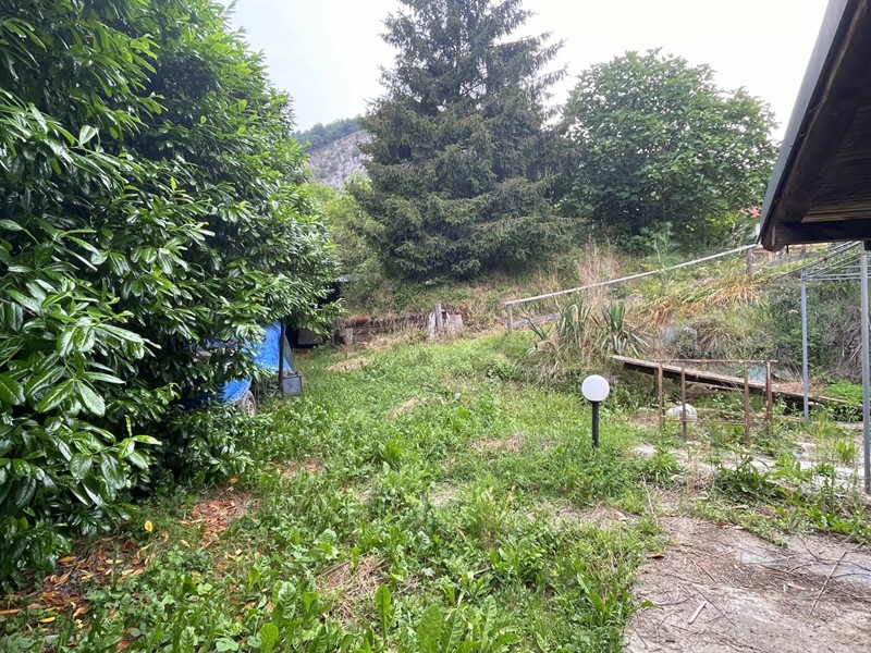 Il terreno è composto da un unico appezzamento suddiviso in due livelli e comprende due manufatti, regolarmente accatastati come magazzini, per un totale di circa 18 mq.
