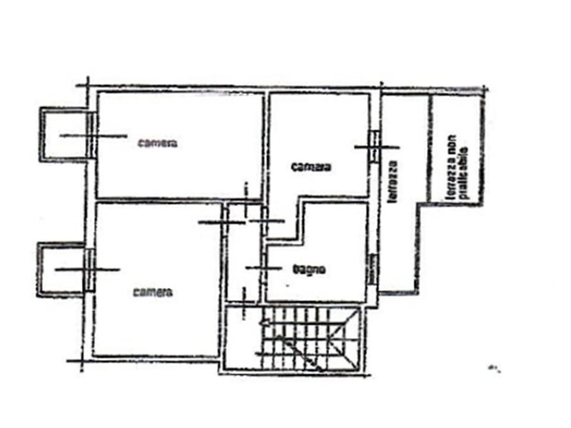 • Primo piano con tre camere (matrimoniale, media e cameretta), bagno, due balconcini e terrazza vivibile.