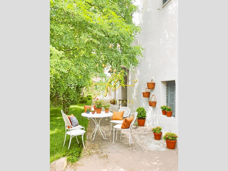 Dalla piccola resede comune si accede all'abitazione, dove l'ingresso si apre su due eleganti archi: