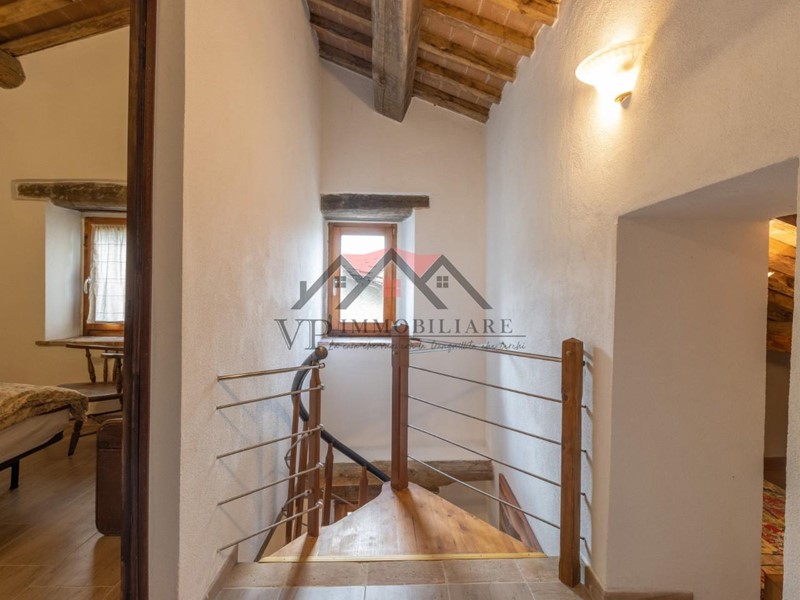 Salendo la scala in legno che ti accompagna al piano primo o in alternativa passando dal giardino esterno sempre per accedere al piano primo troverai un’ulteriore camera di letto, un bagno con doccia e un ripostiglio.