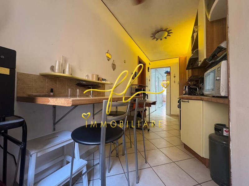 Ingresso in ampia sala con doppia finestra, corridoio con comodo armadio a muro, cucina semi-abitabile, camera matrimoniale e camera media e bagno senza finestra.