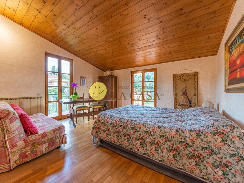 Dal salotto scala ornamentale a vista conduce ai piani superiori , al primo piano vi sono due camere matrimoniali con balconi panoramici e bagno con vasca , al secondo piano camera studio e cameretta con balcone panoramico.