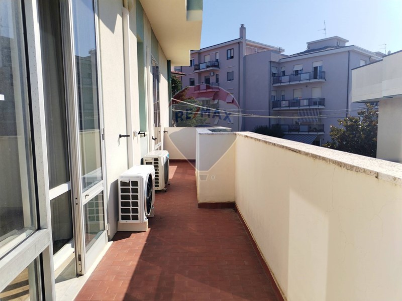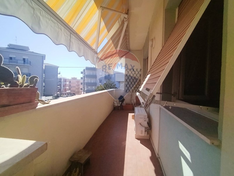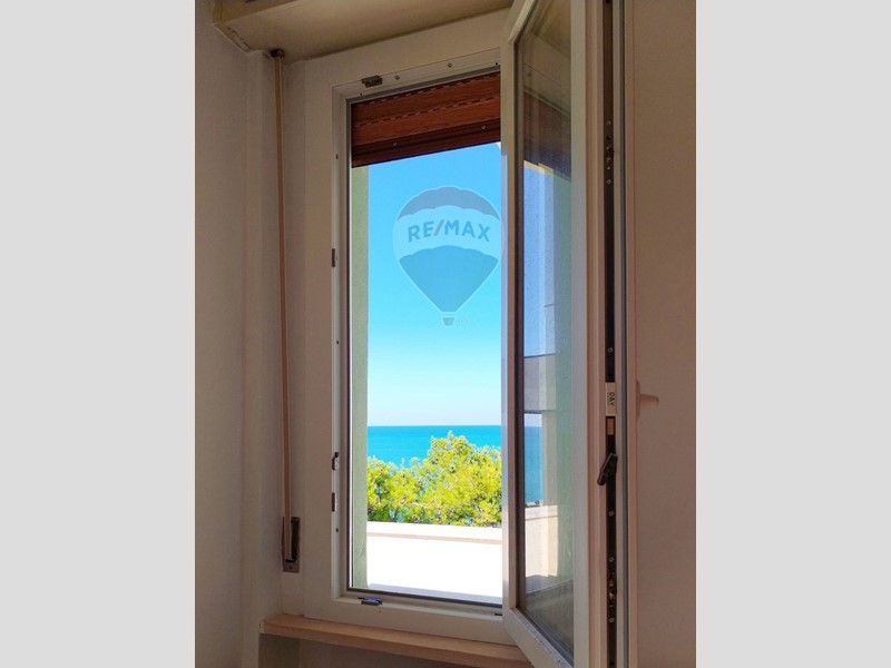Con una superficie di 102 mq, offre ampi spazi, per chi ama gli ambienti ben vivibili ed è suddiviso con ampio ingresso con ripostiglio, ampio salone con balcone lato mare, cucina abitabile con balcone lato strada, 2 camere da letto, un bagno ed una verandina di circa 7 mq. Completano la dotazione una cantina ed un piccolo pezzetto di giardino adiacente all'edificio (ovviamente distaccato dall'abitazione). Riscaldamento con aria condizionata caldo/freddo. Acqua calda con caldaia a gas.