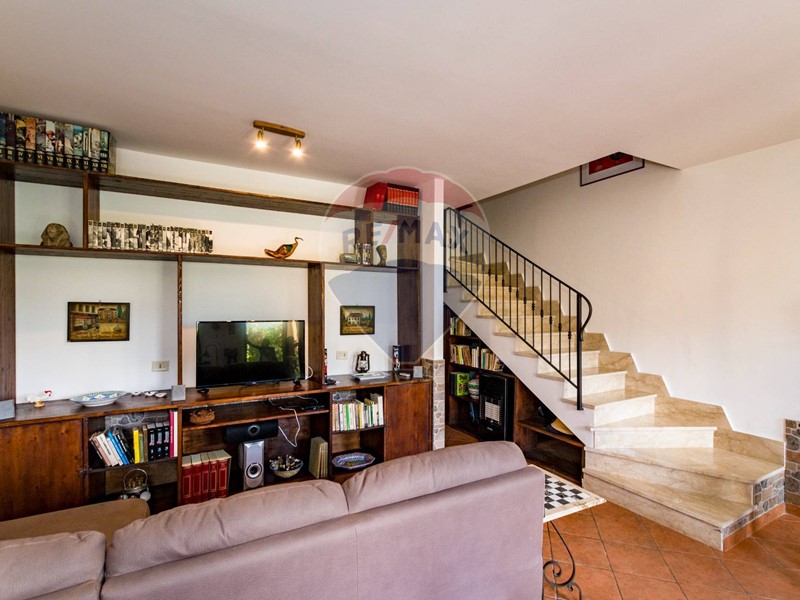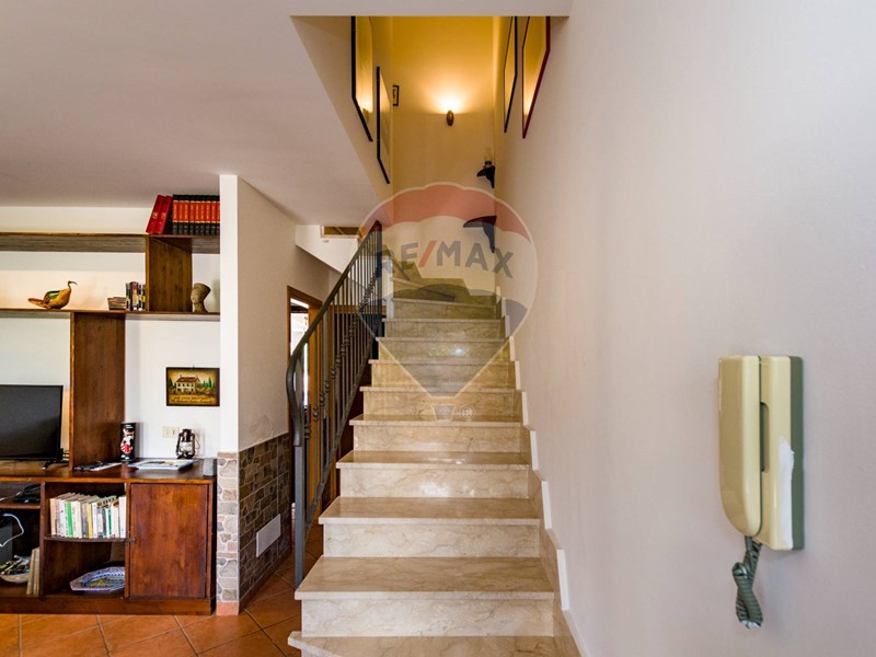 La villa dispone inoltre di un terreno privato ben articolato, in cui si distinguono una zona terrazzata pavimentata, una zona ricca di piante ornamentali, e un terrazzamento che ospita una piscina con struttura fuori terra, che rimane a dotazione dellimmobile.