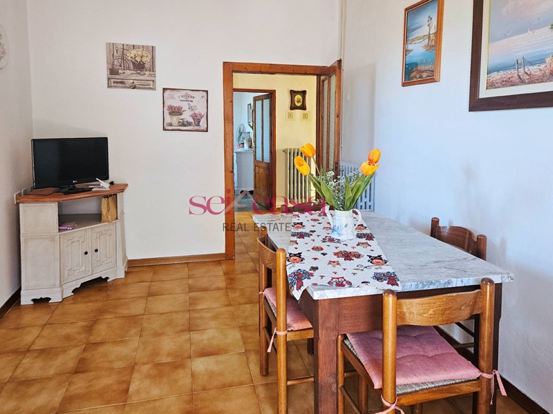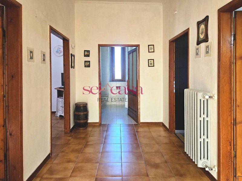 Al piano rialzato si trova un appartamento di 114 mq al quale si accede attraverso una piccola corte piastrellata ed una doppia scala. E' composto da corridoio di ingresso, ampio soggiorno, sala da pranzo con cucinotto e accesso al terrazzo, due spaziose camere matrimoniali, bagno con c.f.. L'appartamento necessita di ristrutturazione, ma comunque è immediatamente abitabile.