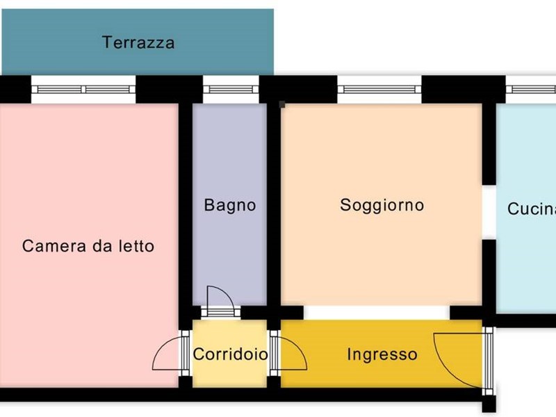 L'immobile si compone da: ingresso su spazioso soggiorno con cucinino, disimpegno, bagno finestrato e camera da letto matrimoniale.