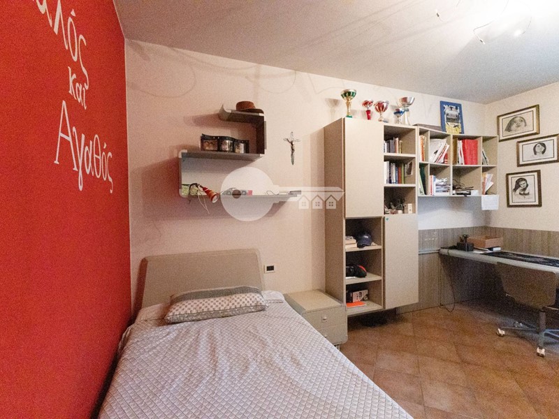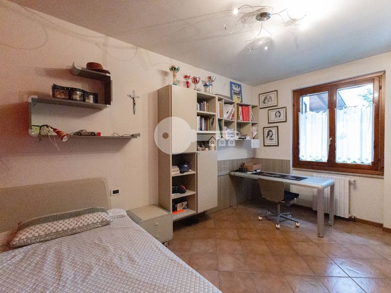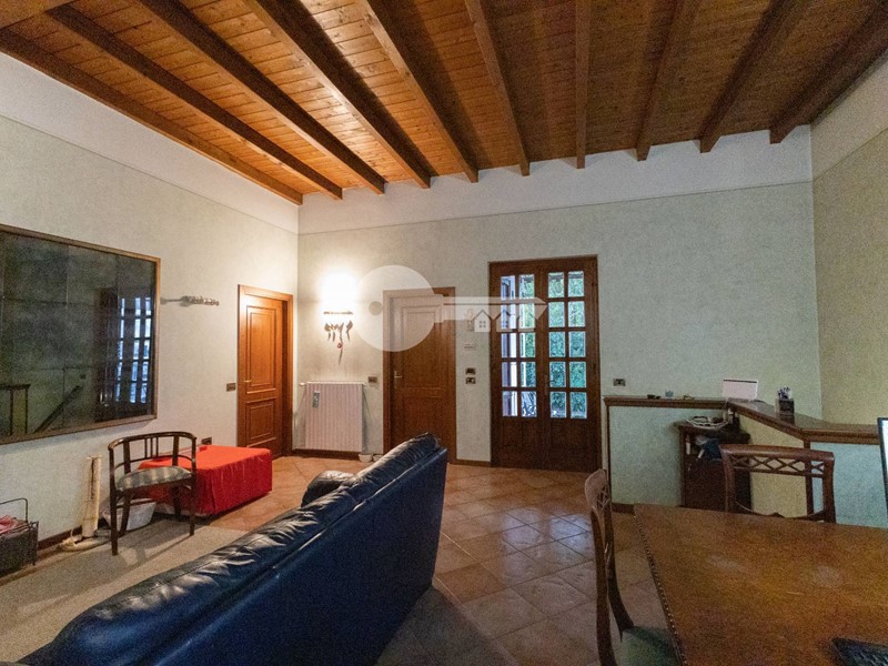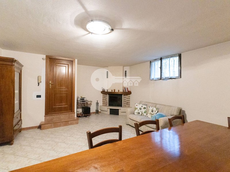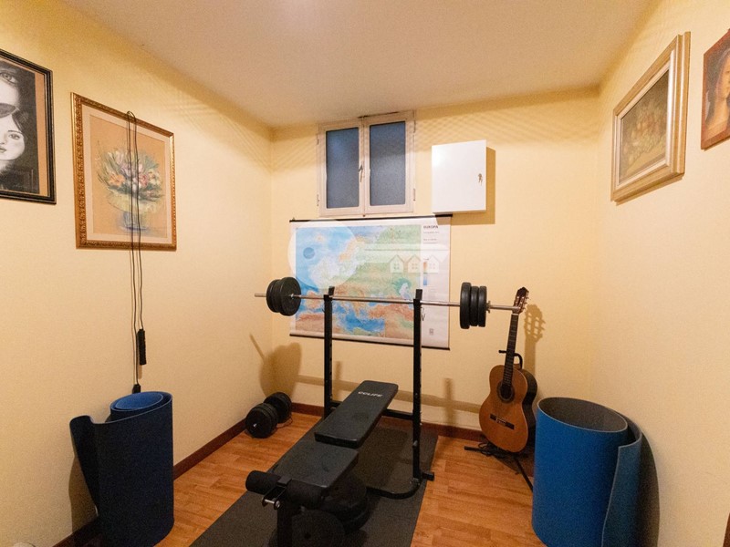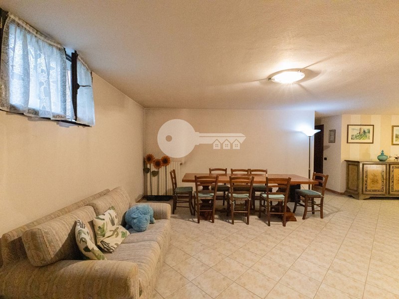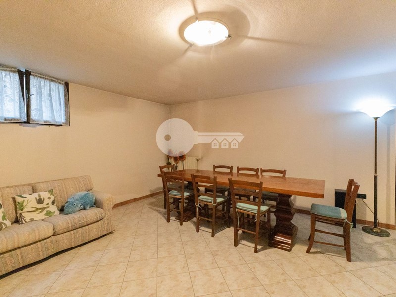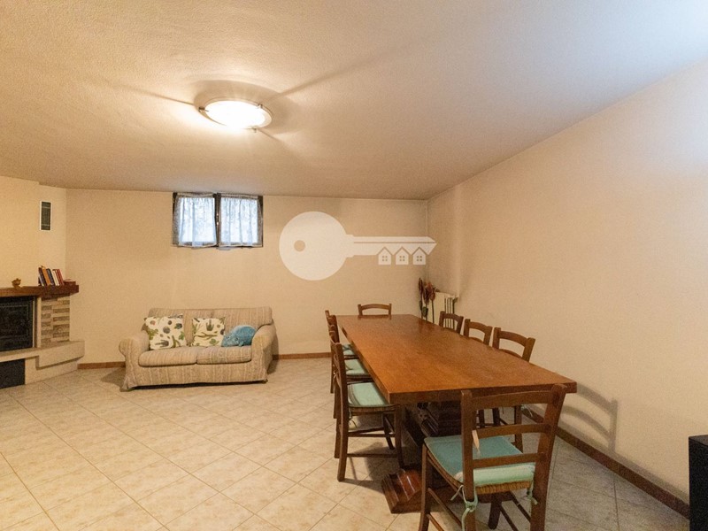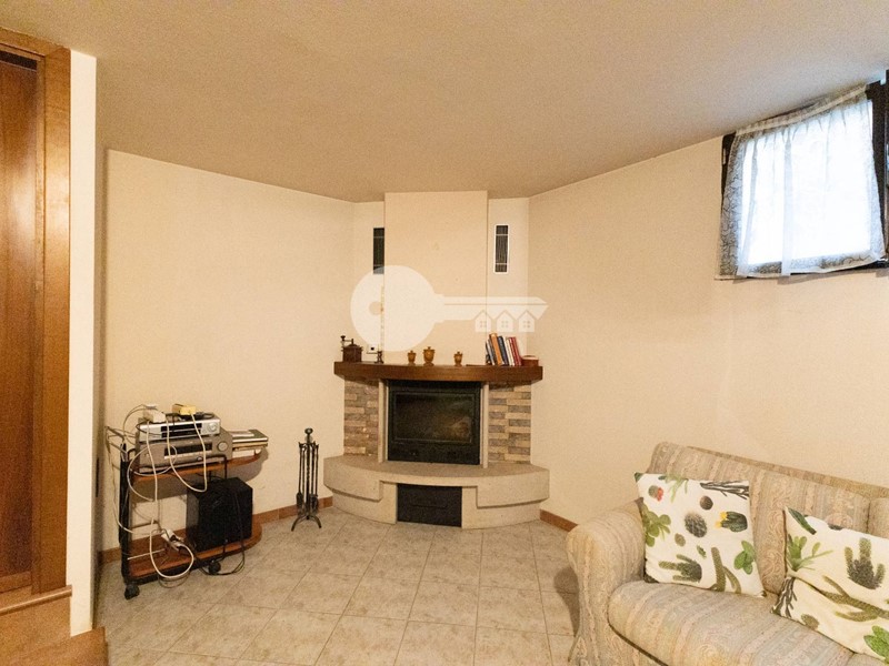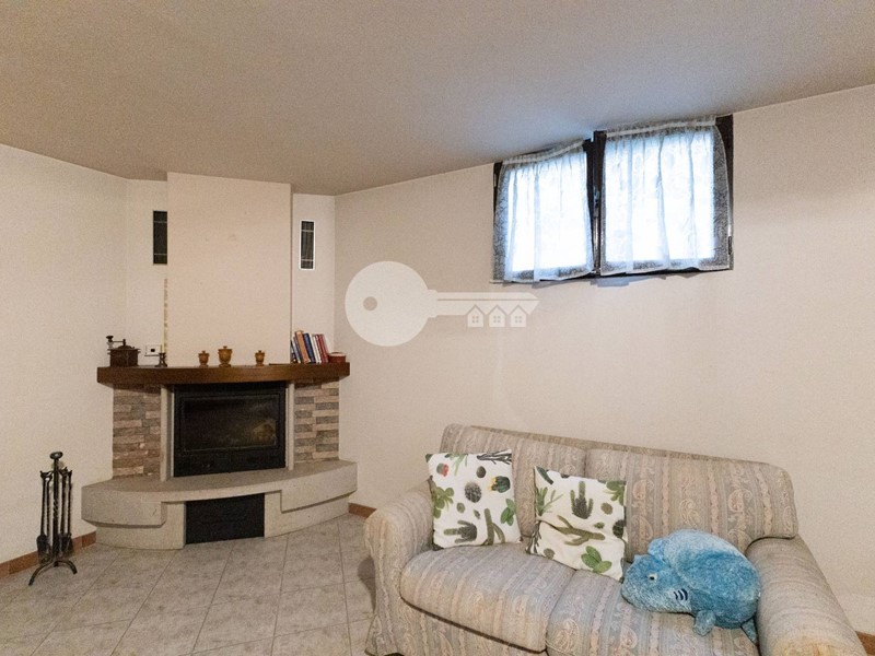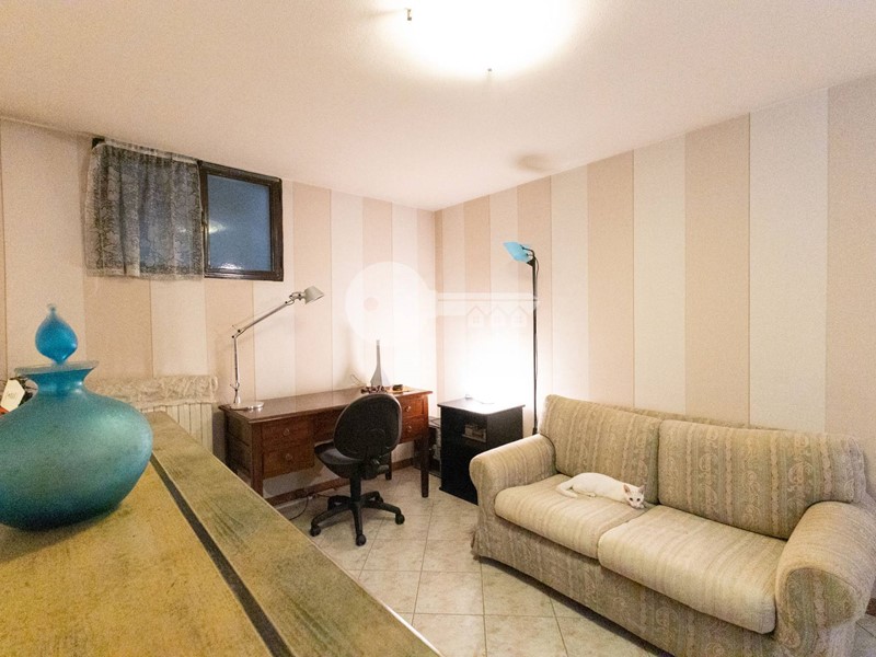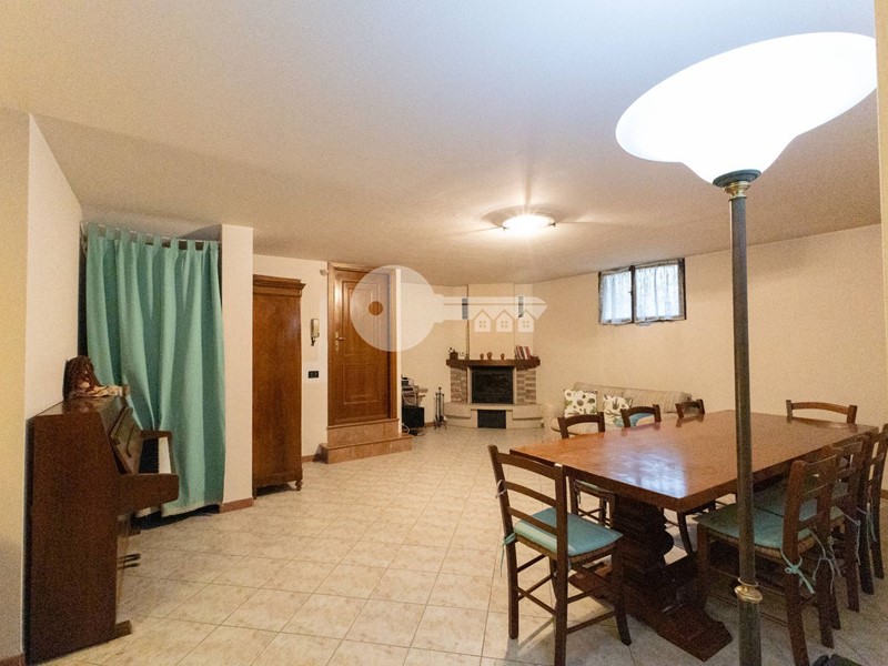 Tramite una comoda scala interna si accede al piano interrato, dove si trova una spaziosa taverna con camino, affiancata dalla lavanderia con vano caldaia, da uno studio e da un garage doppio.