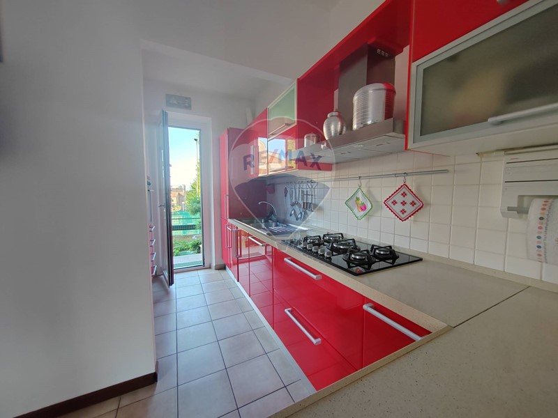 La cucina si affaccia su un luminoso soggiorno doppio, perfetto per momenti di convivialità.