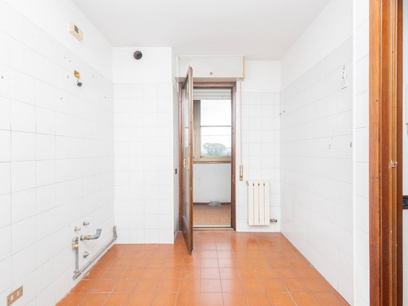La soluzione sita ad un settimo ed ultimo piano con ascensore, risulta così composta: ingresso su ampio doppio soggiorno, cucina abitabile con accesso al balcone con vista panoramica, disimpegno, 3 ampie camere da letto di cui una con accesso al secondo balcone, ripostiglio e due bagni di cui uno con box doccia e l'altro con vasca.