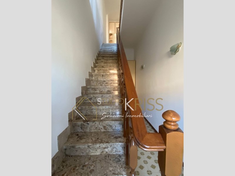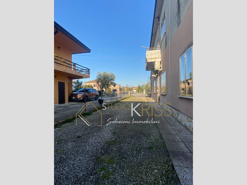 Masi San Giacomo, porzione di fabbricato costituito da un appartamento posto al piano primo ma con accesso indipendente tramite vano scala al piano terra, dotato di autorimessa esclusiva, un vano cantina ed un vano caldaia posti al piano terra e due scoperti pertinenziali esclusivi di cui uno antistante ed uno retrostante non recintato. La casa è composta da ingresso, pranzo/soggiorno con balcone, cucina abitabile, due camere matrimoniali, bagno con doccia, zona lavanderia completa di balcone. Comodo ripostiglio al piano terra.