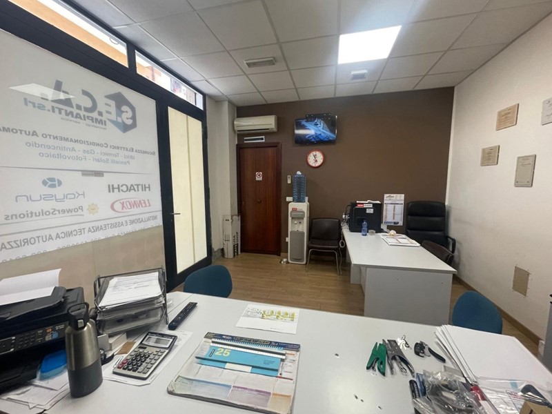 L'immobile è composto da 2 locali, uno uso ufficio e l'altro uso magazzino oltre ripostiglio, antibagno e bagno, con 2 vetrine su strada e un'altra laterale con affaccio su corte di 30 mq ad uso esclusivo. Ristrutturato, altezza soffitto 3,80 mt.