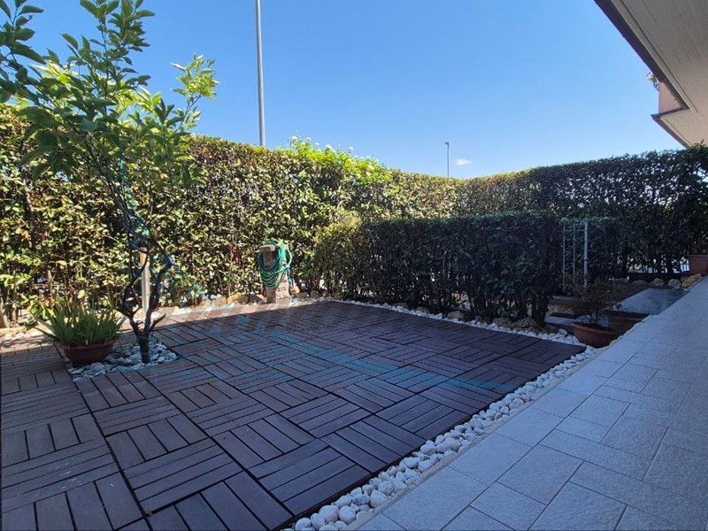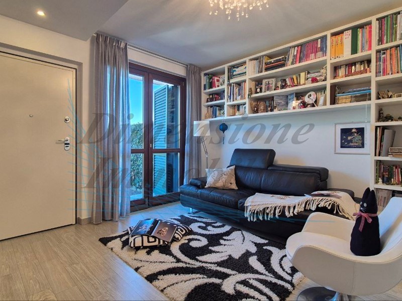 L’immobile si trova in una elegante palazzina esafamiliare e occupa una posizione angolare al piano rialzato, con accesso indipendente. L’ingresso avviene attraverso il giardino esclusivo, curato e dotato di impianto di irrigazione automatica, che introduce alla zona giorno open space, composta da soggiorno-pranzo con angolo cottura.