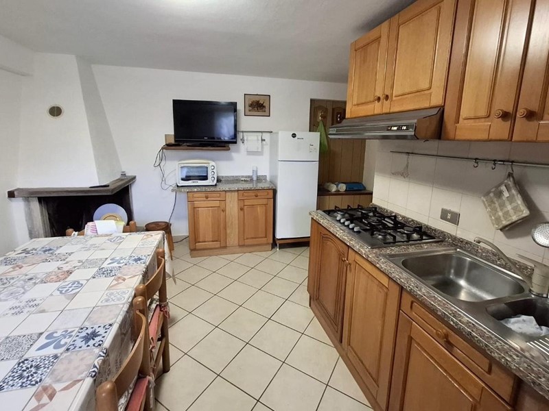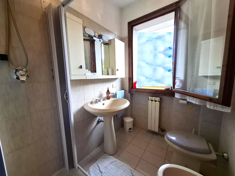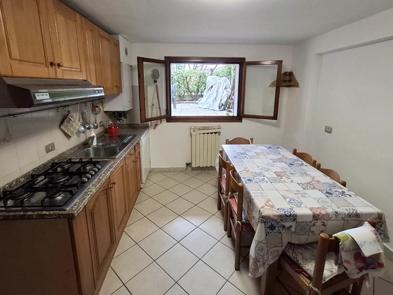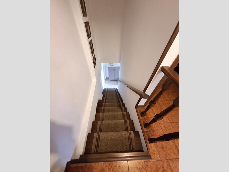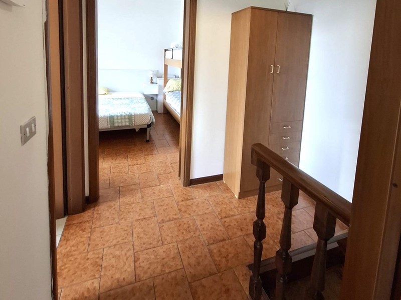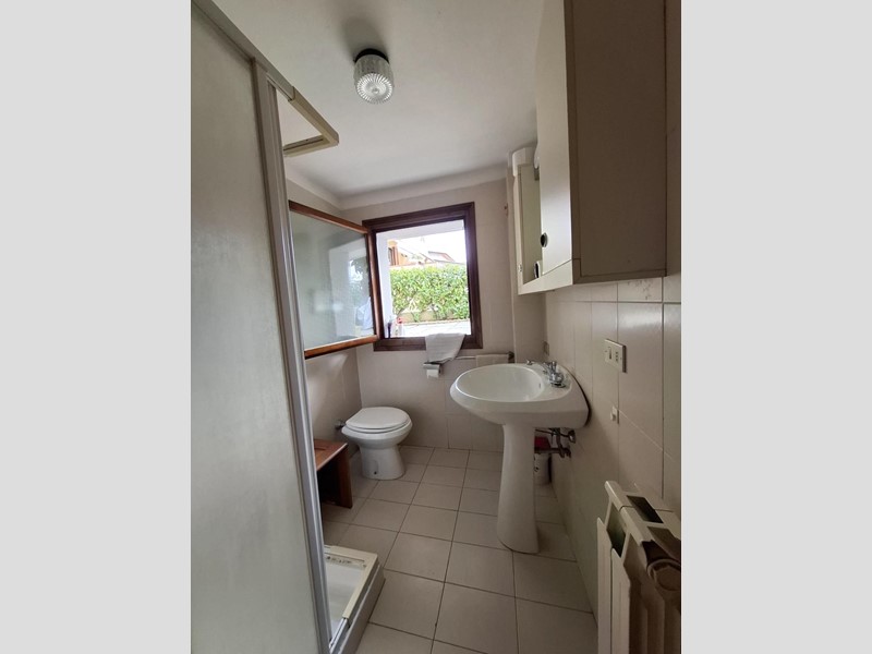 L'appartamento è composto da un ingresso da piano parzialmente interrato, soggiorno, cucina, bagno con finestra e ripostiglio nel vano sottoscala ; al piano superiore due camere matrimoniali con balcone comunicante e bagno con finestra. L'immobile è in buone condizioni generali, con pavimenti in ceramica e infissi in legno. Esternamente troviamo una corte esclusiva piastrellata attrezzata con punto acqua, ottima per le cene all'aperto . Posto auto assegnato in zona condominiale recintata.