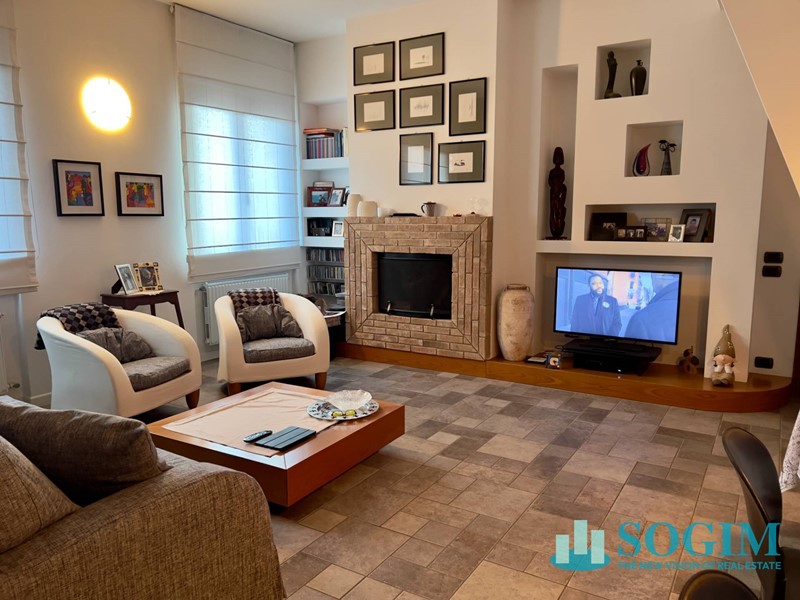L'appartamento ha una doppia esposizione sud - est ed è composto da un ampio ingresso che si apre sulla zona living impreziosita da un delizioso camino in pietra che rende ancor più accogliente e piacevole il soggiorno dal quale si intravede la cucina abitabile, separata da una parete che conferisce al contempo riservatezza e ampiezza all'ambiente.