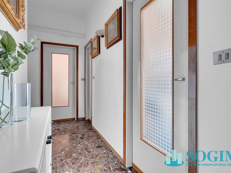 L'appartamento, si presenta complessivamente in discrete condizioni d'uso e manutenzione. I materiali di finitura sono di primo capitolato per quanto riguarda i pavimenti dei locali in marmo, ad eccezione del bagno e della cucina dove troviamo rivestimenti in piastrelle di ceramica, e gli infissi, in legno con vetro singolo.