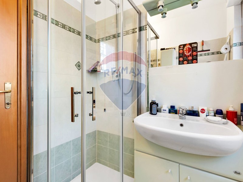 Accanto alla taverna, un bagno con doccia utilizzato come locale lavanderia.