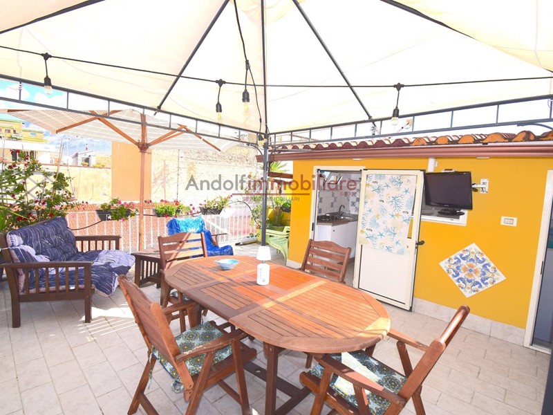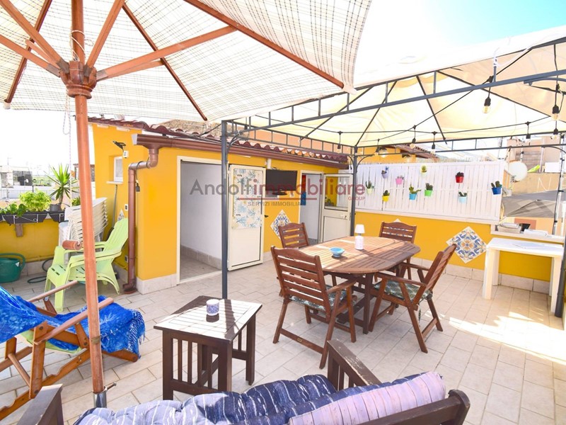 Gaeta Via Indipendenza. In un vicoletto centralissimo di Via Indipendenza, l'Agenzia Andolfimmobiliare propone in vendita, immobile indipendente sviluppato su 2 livelli, oltre ad un terrazzo di 30mq attrezzato di copertura posto al terzo piano con vista mare. L'ingresso indipendente dal piano terra, il primo piano è composto da una camera da letto con balcone, bagno con doccia e finestra, proseguendo le scale si accede ad un altra camera da letto soppalcata (altezza 1,85cm) la quale prende aria luce dalla finestra della camera sottostante e ripostiglio. Il secondo piano è composto da una zona giorno ambiente unico con angolo cottura con balcone, bagno con doccia e finestra. Al terzo piano troviamo un terrazzo abitabile di 30mq con vista mare con annesso cucinotto. L'immobile è stato completamente ristrutturato di recente, ad eccezione della pavimentazione della camera da letto posta al primo piano, tutti gli ambienti sono climatizzati caldo/freddo (anche nella camera soppalcata), zanzariere, viene venduto completamente arredato, ad eccezione di effetti personali e qualche arredo posto sul terrazzo, ottime rifiniture generali. Ideale sia come immobile per trascorrere le vacanza estive e sia come B&B, dato che le scale sono esterne agli ambienti principali.