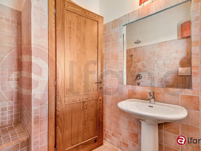 Le tre camere da letto regalano comfort e privacy, mentre i due bagni, entrambi dotati di doccia in muratura, uniscono funzionalità e charme rustico con eleganza discreta.