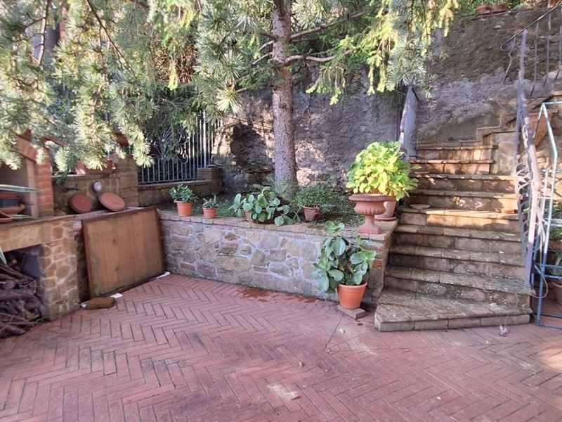 Bel terra tetto di circa mq. 120 circa distribuito su due piani e composto da: soggiorno/pranzo, camera, bagno e disimpegno al piano terreno e 3 vani al piano superiore oltre al bagno e ripostiglio. L'immobile è stato oggetto di una sapiente ristrutturazione progettata sia nella parte esterna del giardino che nel piano sottostante, che ha richiesto un arredo disegnato appositamente e che rimarrà parte integrante della casa. I due piani sono collegati da una scala esterna dove insiste anche un vano sottoscala. Il giardino, per lo più lastricato, complessivamente di circa mq. 200 circa, è corredato da un barbecue e una cucina in muratura; inoltre l'immobile gode di un'ottima privacy dovuta alla sua posizione al fine del centro abitato e circondata da uliveti e da colline boscose. La casa si presta anche ad una destinazione ricettiva avendo la possibilità di rendere indipendenti i due piani.