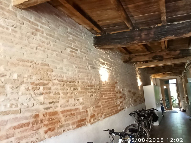 Vendesi casa indipendente in centro storico a Bagnacavallo orientamento Nord-Sud, prospiciente due strade parallele, in zona mai alluvionata. Ubicata in una delle caratteristiche vie del centro storico del paese con affaccio su importante edificio secentesco. Superficie calpestabile oltre 300 mq distribuiti su due piani più ampio sottotetto da ristrutturare, con corte interna e servizi con uscita su strada posteriore. Al piano terra dall'ampio ingresso, con travi a vista, accesso a due grandi stanze con annessi bagno e servizi ed uscita su corte interna. Al primo piano, salendo la scala in pietra, sala da pranzo con angolo cottura, grande camera da letto matrimoniale, cameretta da letto singola, studiolo/ripostiglio e bagno. Dal disimpegno al primo piano si accede anche, tramite scala a chiocciola in legno, ad un ampio sottotetto con travi in legno a vista e tavelle dal quale, ristrutturando, possono essere ricavate due ulteriori spaziose camere.