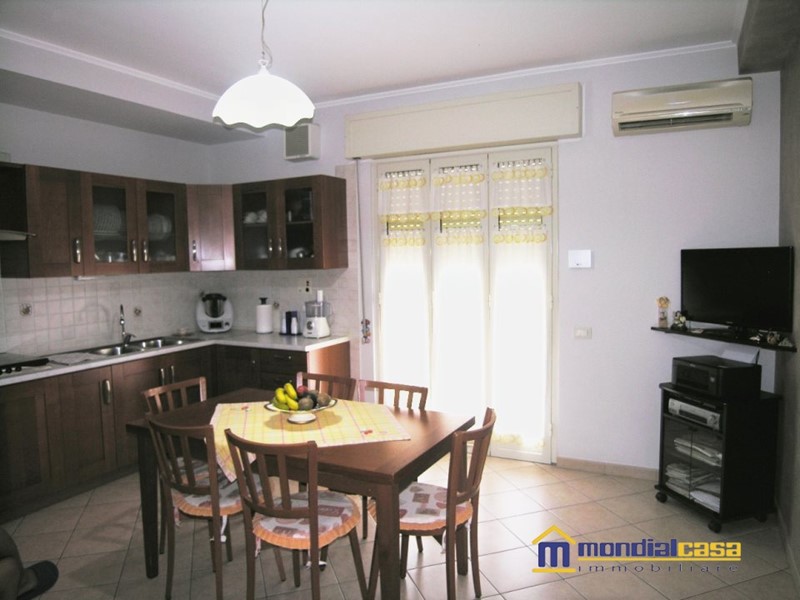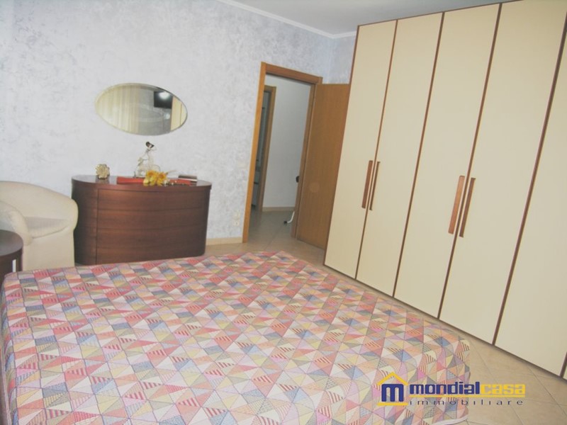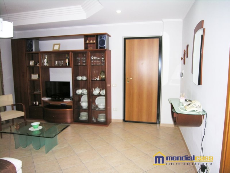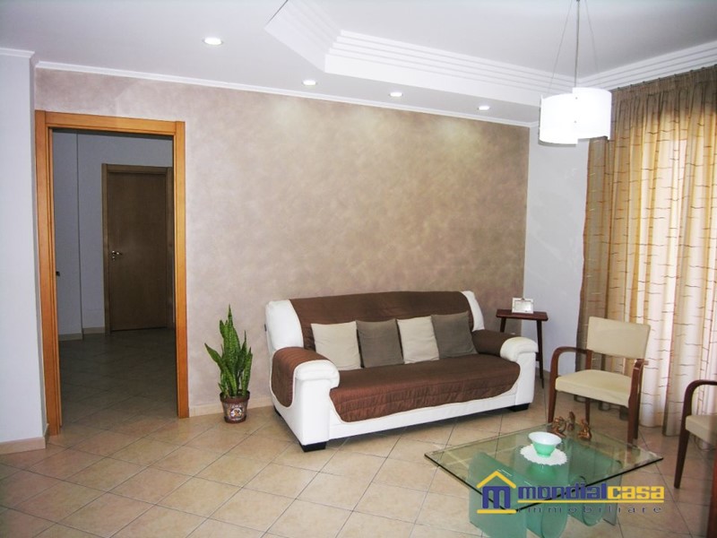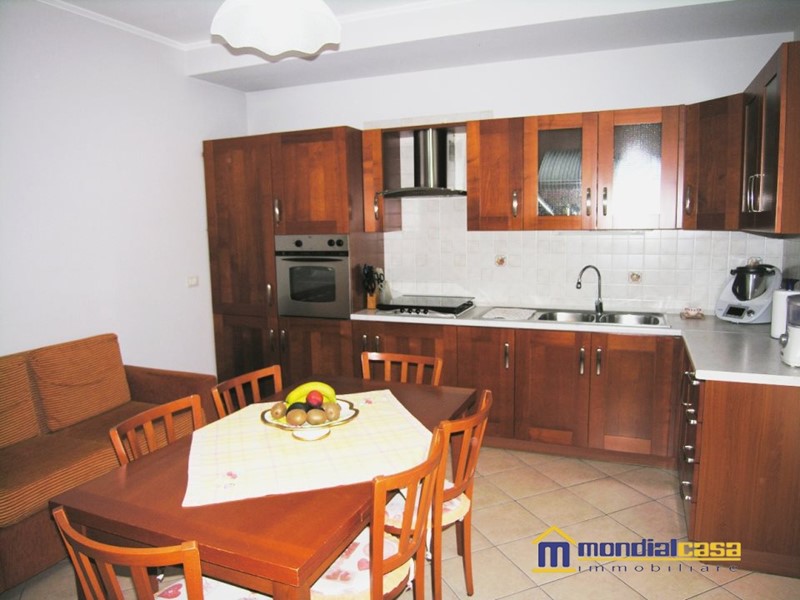 Adiacente il viale A.Moro appartamento al primo piano di un edificio con soli sei appartamenti; l'appartamento si trova in condizioni impeccabili, con discrete rifiniture, come si può ben vedere dalle foto, lo stato di conservazione quasi pari al nuovo permettono di poterlo abitare da subito, all'ingresso troviamo un ampio ambiente di soggiorno, comunicante con la cucina, che per chi lo volesse può diventare ambiente unico (mq. 40 circa); il disimpegno con la comodità di un armadio a muro distribuisce ben tre camere da letto (di cui una matrimoniale), il bagno ed il doppio servizio/lavanderia; inoltre sia sulla cucina che sul soggiorno troviamo delle comode verande, utile sfogo esterno, in fine grande garage per due auto, provvisto di soppalco e di serranda motorizzata. Ottima soluzione per chi è in cerca di un comodo e ottimo appartamento dotato di tutti i comfort pronto uso ed in zona completamente servita da tutto. - Maggiori Dettagli: Cucina Abitabile
